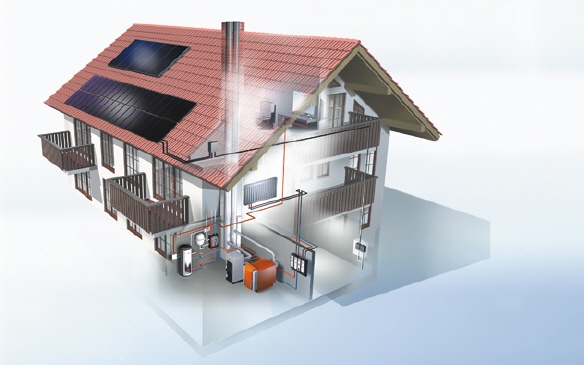 Die Sonne strahlt eine gewaltige Energiemenge zur Erde. In einer halben Stunde kommt so viel Sonnenstrahlung auf dem Globus an, dass damit der gesamte jährliche Welt-Energieverbrauch gedeckt werden könnte. Für die Nutzung der Solarenergie stehen in Deutschland Millionen Quadratmeter an technisch sinnvoll verfügbaren Flächen zur Verfügung. Solaranlagen sind komplette, leistungsfähige Systeme. Je nach Auslegung sind sie in der Lage, den Energiebedarf eines Einfamilienhauses zur Warmwasserbereitung im Jahresmittel bis zu zwei Dritteln zu decken. Auf dem Dach montierte Sonnenkollektoren bedienen die Speicheranlage im Keller für warmes Wasser und zur Unterstützung der Heizungsanlage.