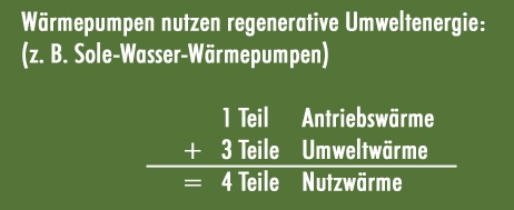 Eine Wärmepumpe nutzt das Energiepotenzial, das uns die Umwelt kostenlos zur Verfügung stellt. Sie nutzt die Energie, die im Erdreich, in der Luft und im Grundwasser vorhanden ist und wandelt sie in Heizwärme um. Dabei setzt eine moderne Wärmepumpe eine Kilowattstunde (kWh) elektrische Energie ein um bis zu fünf kWh Heizenergie zu erzeugen. Und das mit bis zu 40% weniger CO2- Emission im Vergleich zu einer gas- oder ölbetriebenen Heizungsanlage.