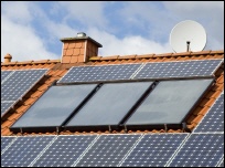 Die Sonne strahlt eine gewaltige Energiemenge zur Erde. In einer halben Stunde kommt so viel Sonnenstrahlung auf dem Globus an, dass damit der gesamte jährliche Welt-Energieverbrauch gedeckt werden könnte. Für die Nutzung der Solarenergie stehen in Deutschland Millionen Quadratmeter an technisch sinnvoll verfügbaren Flächen zur Verfügung. Solaranlagen sind komplette, leistungsfähige Systeme. Je nach Auslegung sind sie in der Lage, den Energiebedarf eines Einfamilienhauses zur Warmwasserbereitung im Jahresmittel bis zu zwei Dritteln zu decken. Auf dem Dach montierte Sonnenkollektoren bedienen die Speicheranlage im Keller für warmes Wasser und zur Unterstützung der Heizungsanlage.